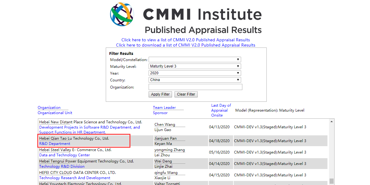 2020年4月18日,我司完成了CMMI3评估的最终发布报告,至此,全部通过CMMI3软件成熟度评估工作。